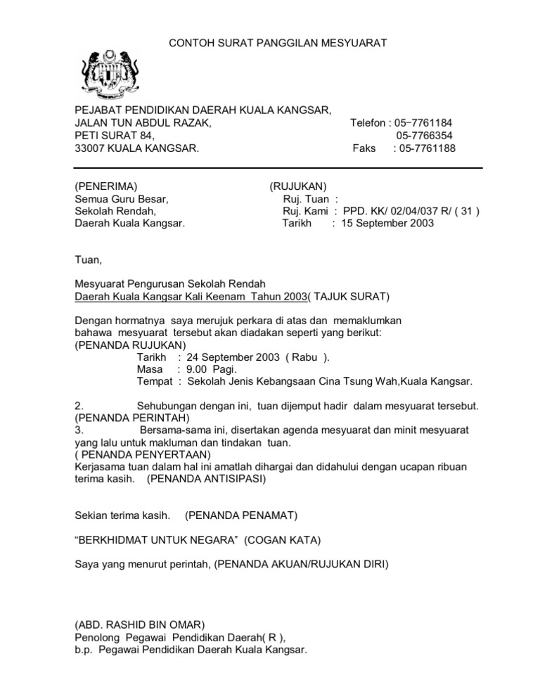 Kepada Semua staff Bahagian Operasi Syarikat Mawar BerduriSDNBHD Bandar Tenggara Tuan Puan MESYUARAT PENGURUSAN BAHAGIAN. Eksa pkd perak tengah surat lantikan. Web Contoh surat panggilan mesyuarat gurusktm1 follow contoh surat mesyuarat 1.
