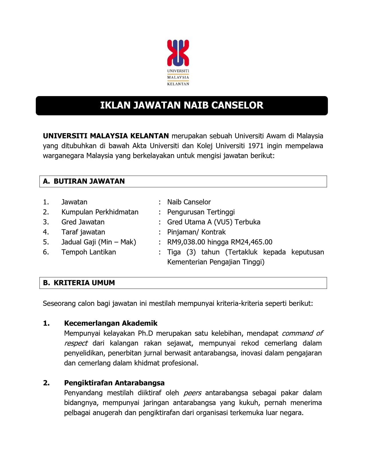 Jawatan Kosong Di Universiti Malaysia Kelantan Umk Jobcari Com Jawatan Kosong Terkini