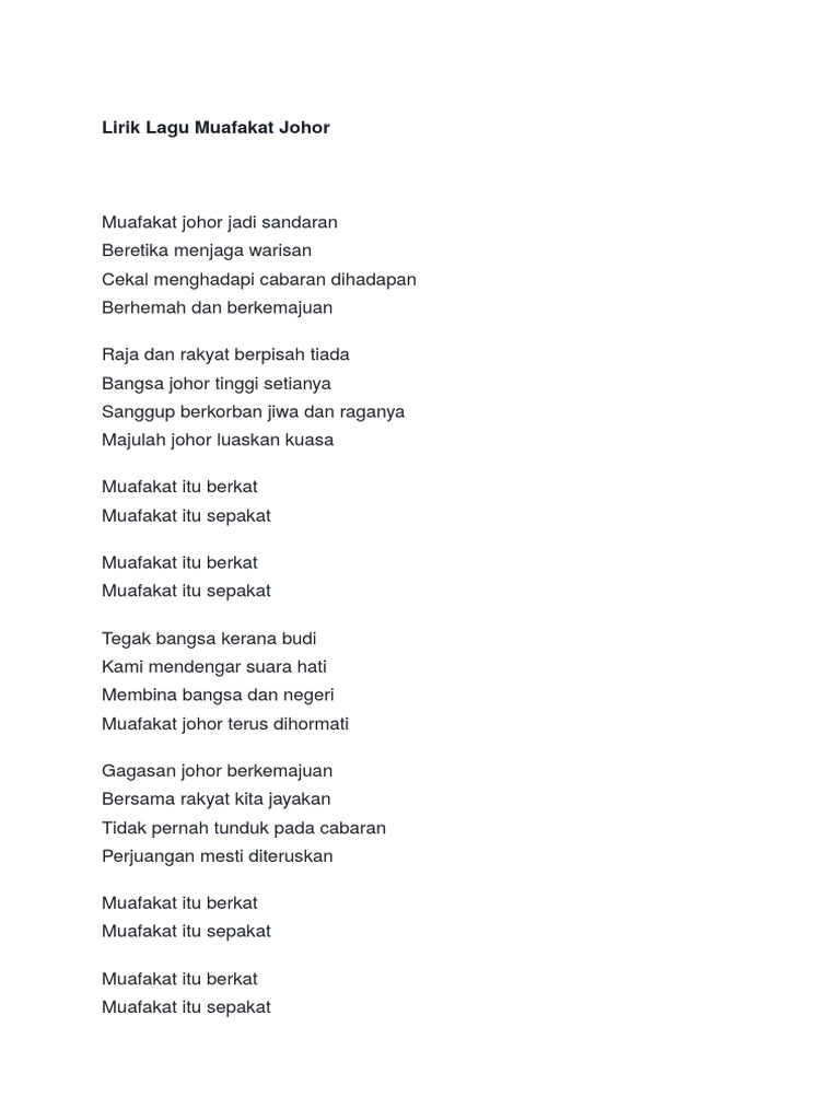 Lagu Bangsa Johor which was composed by Armenian bandmaster Mackertich Galistan Abdullah had no official lyrics until 1914 when a staff. Lagu ini digubah oleh konduktor muzik armenia. Lagu bangsa johor lirik Penghargaan ini menjadi yang kedua kalinya secara berturut-turut setelah pada 2021 lalu Kepri meraih penghargaan yang.